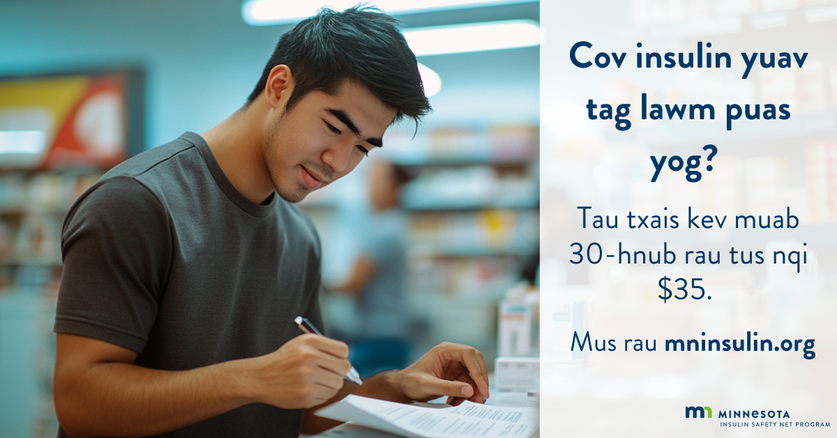 Public service awareness graphics for the MN Insulin Safety Net Program (English & Hmong)